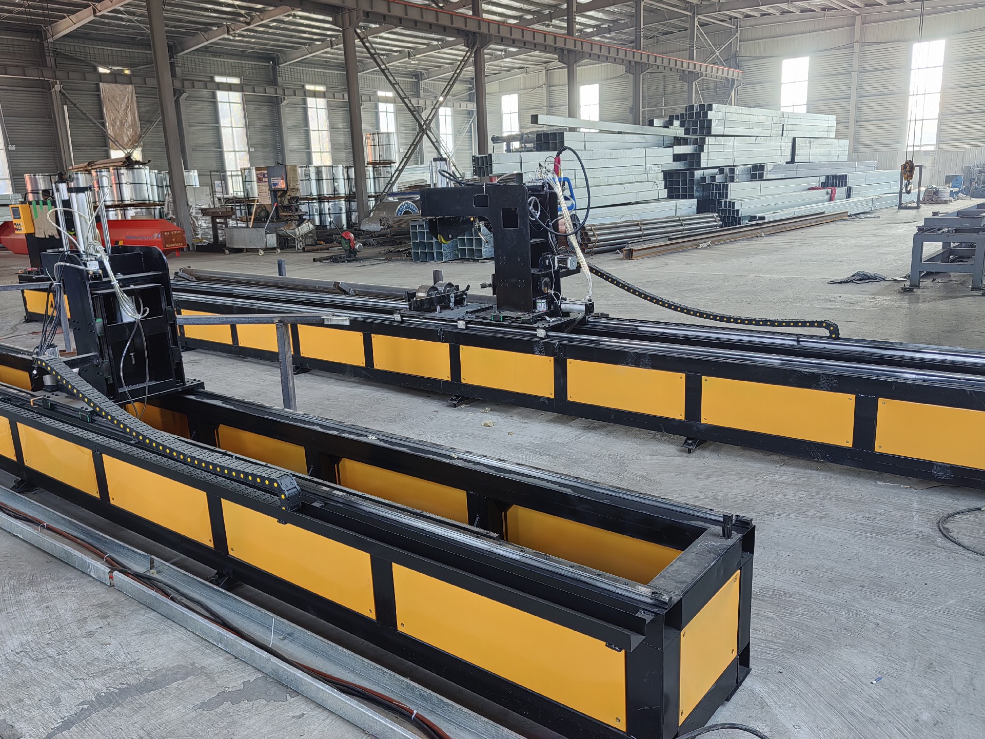 2022年公司新增車間屋頂光伏發電裝置,實現**用電,同時企業用電成本大大減少。車間有**制造裝備有2臺激光切割機,多套龍門焊機,8臺自動焊接機械手,20臺手工焊機,CZ檁條加工機,附件折彎機,8個噴頭通過式拋丸機,700平鋼構件防腐噴涂車間,鋼構加工精度高,自動化程度高。